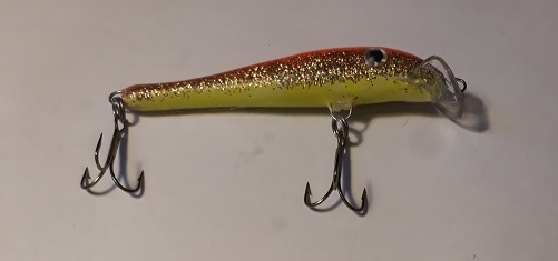 Vaapussa on fluorioranssi selkä, hologrammi kultahile kyljet ja fluorikeltainen maha.